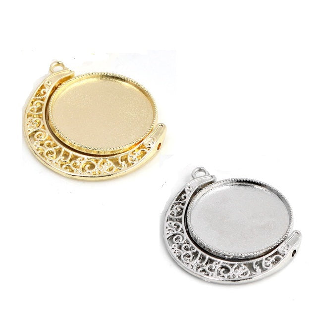 Dubbelzijdige hanger met een ronde binnenmaat van 25 mm voor bijvoorbeeld een zelfgemaakte cabochon.