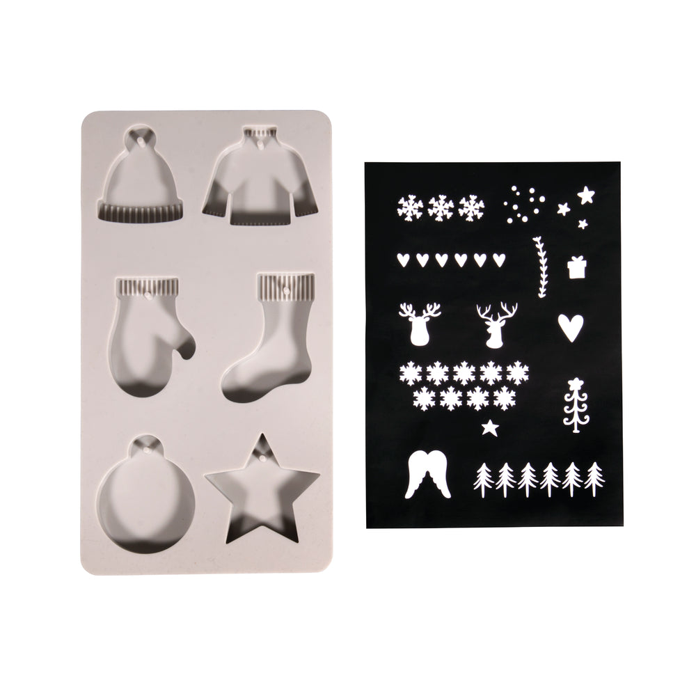 Inbegrepen is een A5 sjabloon met winterse uitparingen (zie foto).