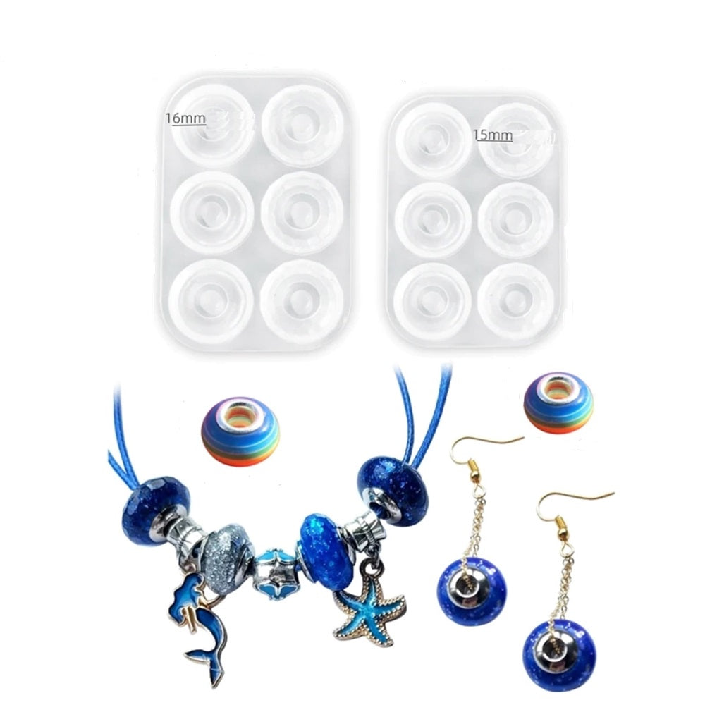 Maak zelf de mooiste Pandora look-alike kralen voor de "bead-pin" (elders verkrijgbaar op de site) met deze siliconen kralenmallen voor 6 groot gat kralen elk. De helft van de mal geeft een glad resultaat en de andere helft is facet. De mallen hebben afzonderlijke maten. Voeg aan uw giethars glitters en kleurpigment en/of overige deco-materialen toe voor de meest unieke kralen! Werk ze af met onze speciale kraaleyelets voor deze kralenmallen die passen op de bead-pins.