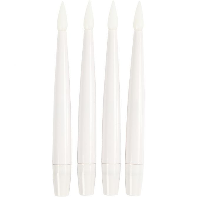 Kaarsen gemaakt van glanzend kunststof met batterij gevoed, gouden LED-licht en flikkerend vlameffect.