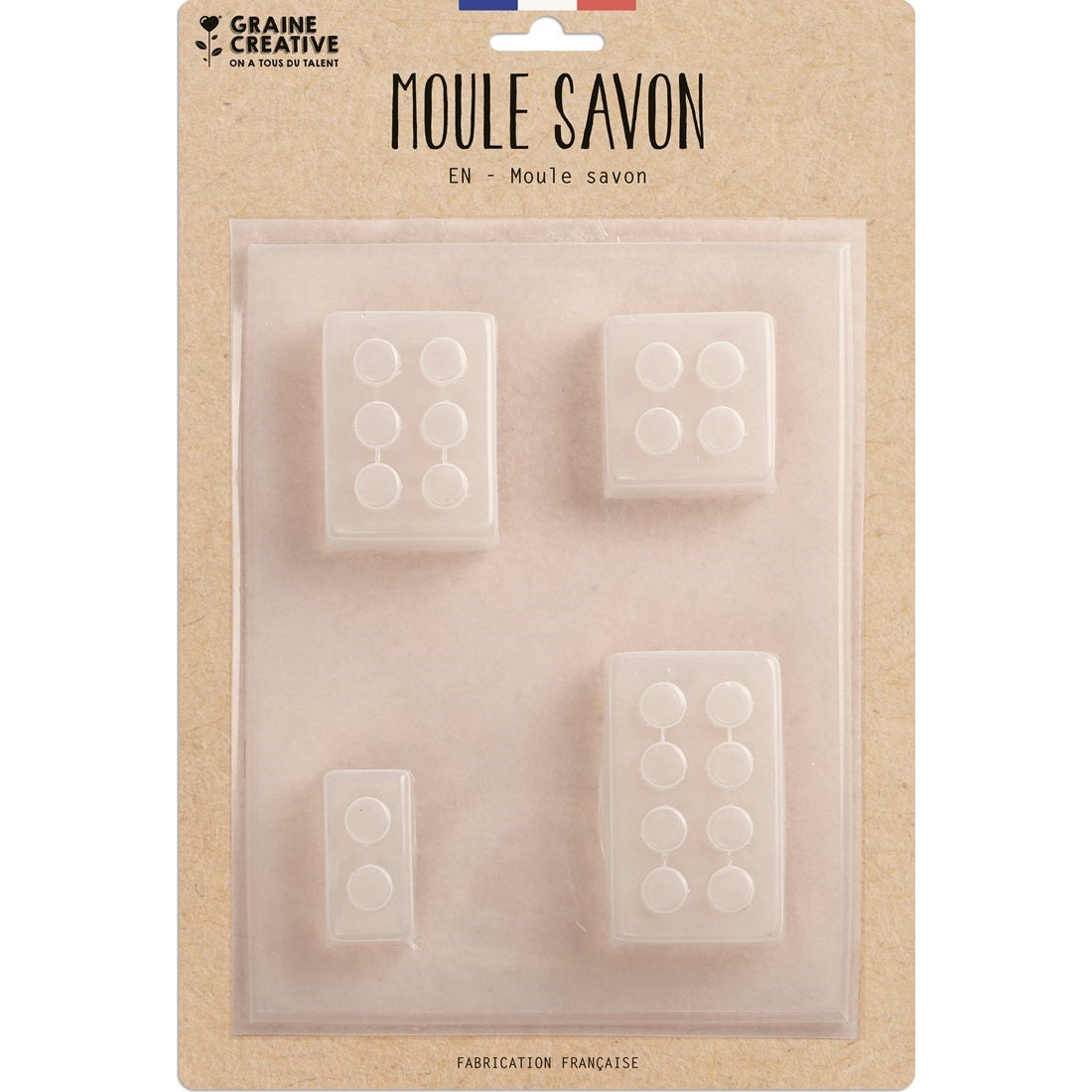 Vier verschillende bouwblokken van zacht plastic speciaal om bijvoorbeeld zeepjes of epoxy resin te gieten.